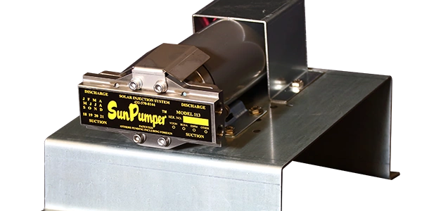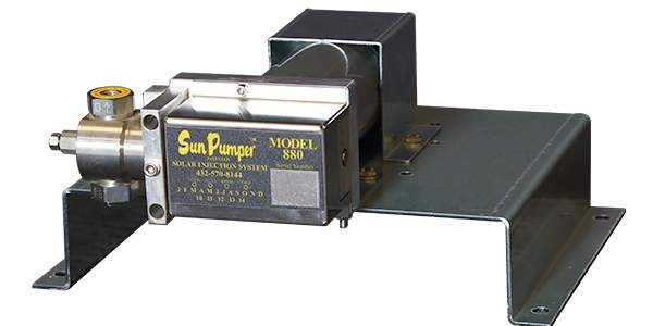 The Sun Pumper Model 880 is our most popular solar chemical injection pump, delivering proven 5 GPD @ 1000 PSI performance with ultra-simple design. Combining reliability and dependability, the Model 880 is the most reliable solar-powered chemical injection pump ever designed for your location.